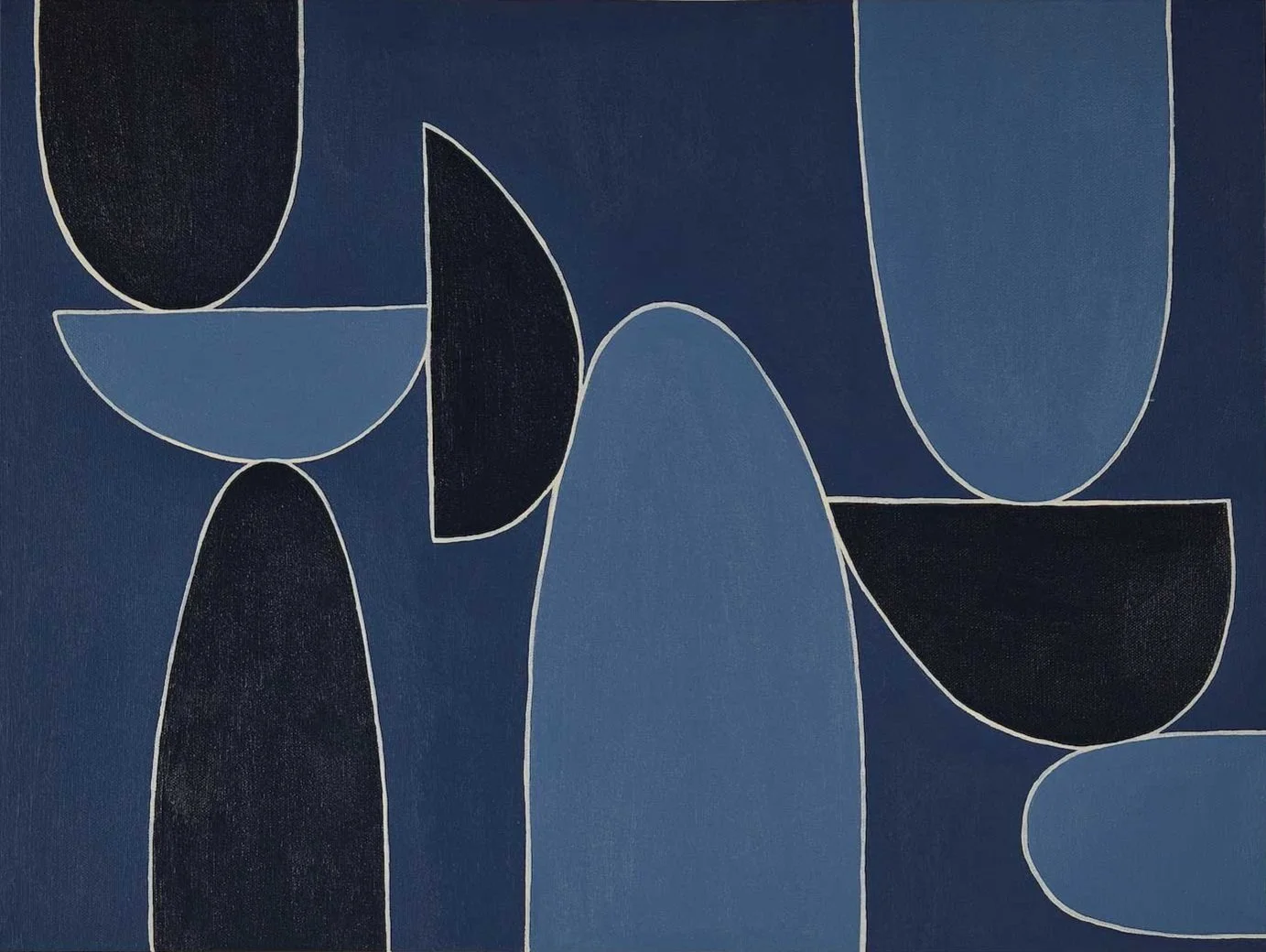- Tagged Erica Hauser - No Ordinary Blue, american, Still life, color, abstract, painter, acrylic painting, wood stacking, blue, midcentury modern, mcm painting, graphic